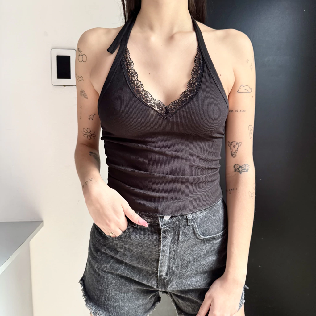 Musculosa de Morley, escote en v y detalle de puntilla en el borde.